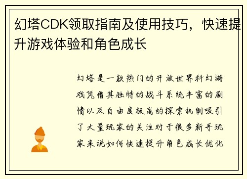 幻塔CDK领取指南及使用技巧,快速提升游戏体验和角色成长