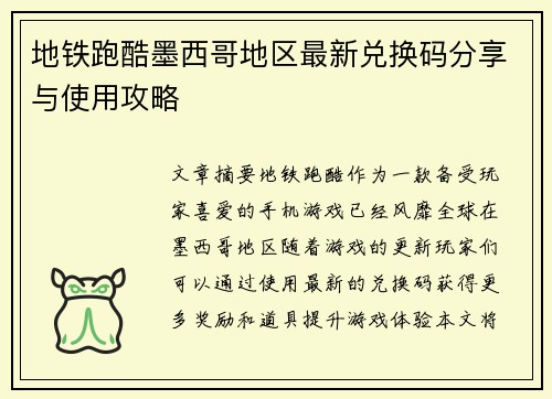 地铁跑酷墨西哥地区最新兑换码分享与使用攻略